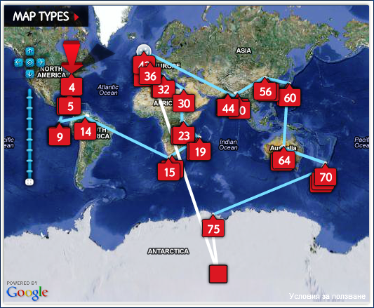 Уебсайтът калкулира дневните стъпки на класа и ги умножава по 7. Разстоянието се показва на карта.